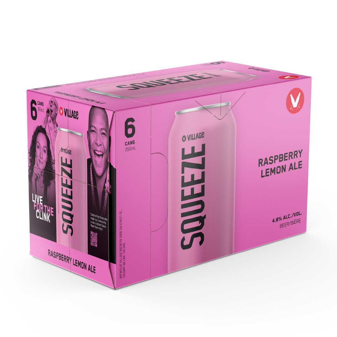 The Village Squeeze is balanced with light additions of lemon zest and fresh raspberries. It has sweet malty notes and herbal hop aroma. It is a beer first and foremost, with subtle compliments from the fruit.